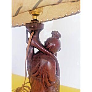 Hand carved Asian Fisherman, Oriental Style Table Lamp 18" 1930-1940