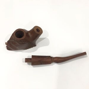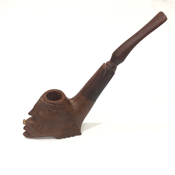 Vintage wood conduit for combustibles, never used . Hand carved face and detachable handle.