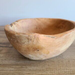 Hand carved wooden ladle. Has some surface small cracks on wood. Organic shape. Lots of character.