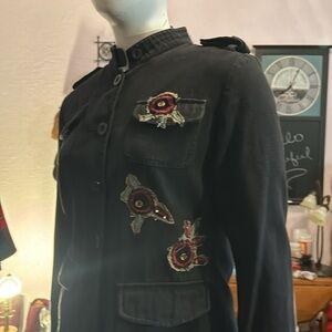 Super fun GUNS & ROSES embellished black blazer in size medium ( please see measurements for fit )