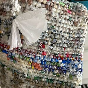 Hand crafted Woven Plastic Bag Eco-Friendly Multicolor Tote Bag 16" x 13"