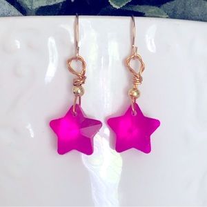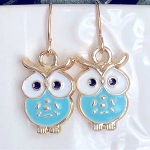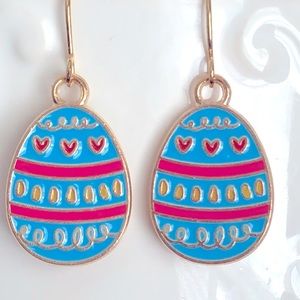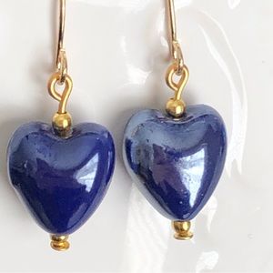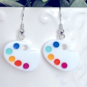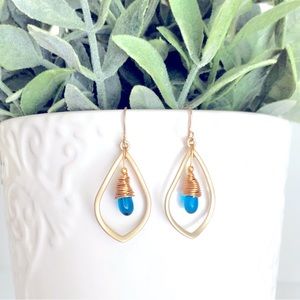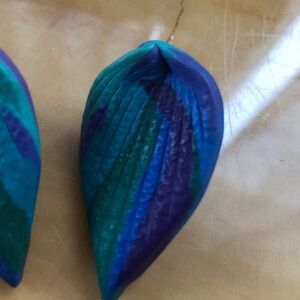 Unique leaf-shaped earrings in vibrant blue and purple.