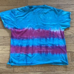 Hand dyed tie dye t-shirt, blue/pink/purple, size L, 100% cotton