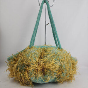 Hand knit Wool Aqua Eyelash Knit Satchel Purse