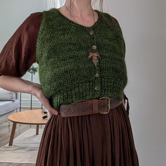 Fabel knitwear Hobbiton vest knitted by me! I love it but I made the mistake of knitting the wrong size :( it's made of alpaca mohair and silk. Fluffy and light as a cloud. Gold threads are woven in with the yarn. Price is firm. Took me countless hours to make.