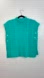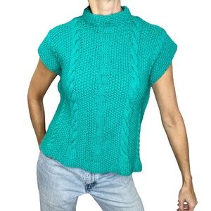 Hand knit turquoise boxy side slit mock neck short sleeve sweater
