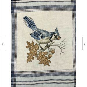 Hand made BLUE JAY Cross Stitched 14" Pillow Cushion Cover Finished Bird Design