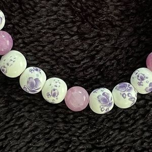 Hand made Glass bead Bracelet Made with elastic for easy wear Bracelet stretches to 5.5"