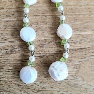 Hand made Pearls and Peridot bracelet and earrings jewelry set.