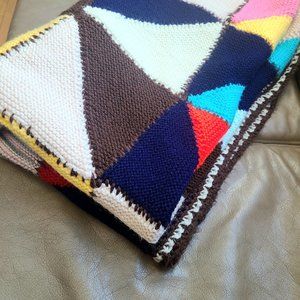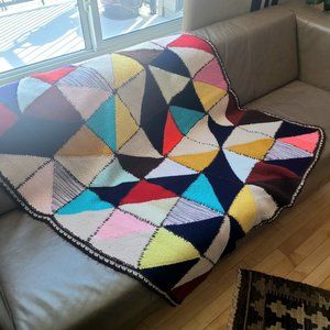 Beautiful hand made crochet throw, Afghan or blanket with red, blue, Yellow, pink, black, brown and white colors. 42'' x 50''. Good condition.