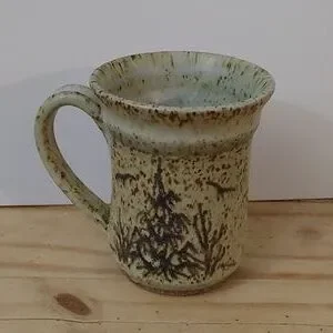 This handmade mug is thrown on the potter's wheel . Real leaves/cuttings are used in the decorating process. a truly unique piece.
