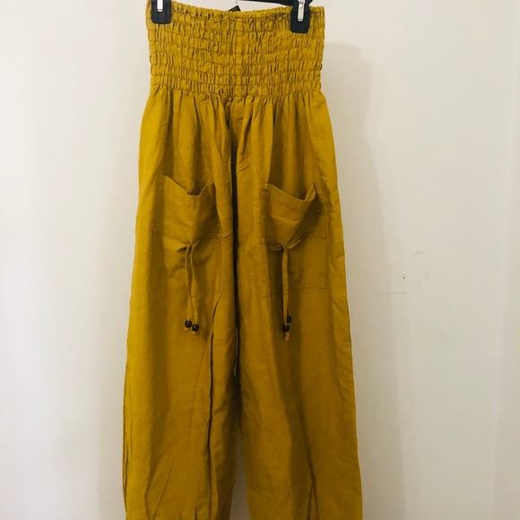 Mustard, functional pockets. Elastic waist band. Very comfortable. Never worn. New with tags.