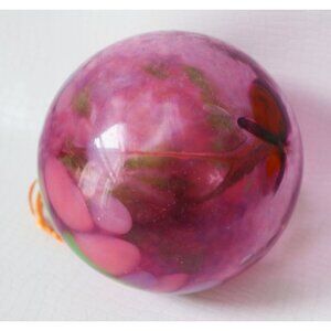 Hand-Blown Glass Ornament With Tree Design In Shades Of Pink & Green