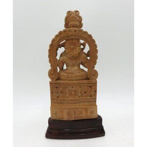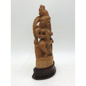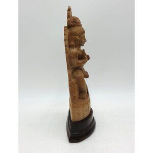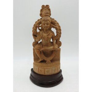 Hand-Carved Wooden Indian Statue With Intricate Detailing and Dark Base 9" Tall