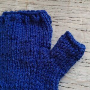 Hand-Knit Blue and Green Fingerless Mittens Vancouver Canucks Seattle Seahawk