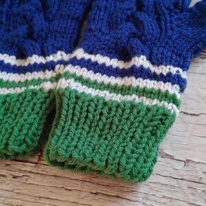 Hand-Knit Blue and Green Fingerless Mittens Vancouver Canucks Seattle Seahawks