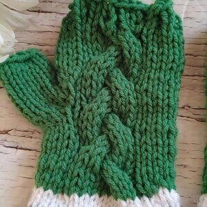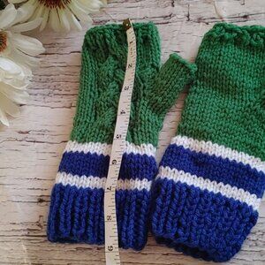 Hand-Knit Blue and Green Fingerless Mittens Vancouver Canucks Seattle Seahawks