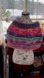 The textured collar is knit with chunky art yarns, giving it structure and drama. The body is built in layered rows using hand-dyed wool, boutique indie skeins, recycled fibers, and wild pops of color that keep the eye traveling.