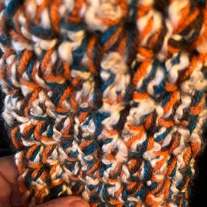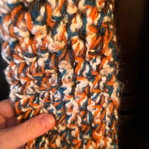 Multicoloured, hand-knit scarf. Beautiful and soft - perfect for Spring nights!