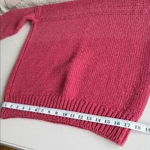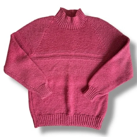 Hand-Knit Wool Sweater Raspberry Pink Medium Weight Unique Artisan Details