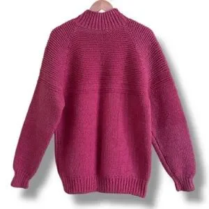 Wrap yourself in warmth and charm with this beautifully hand-knit wool sweater in a rich raspberry pink hue. Crafted with care from medium-weight wool, it offers cozy comfort and timeless style.