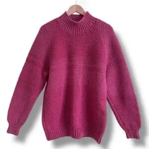 Hand-Knit Wool Sweater Raspberry Pink