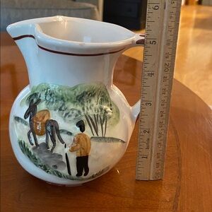 Enhance your home decor with this exquisite hand-painted ceramic pitcher. Featuring a charming design, this piece adds a touch of elegance to any space. Originates from Calabria, Italy.