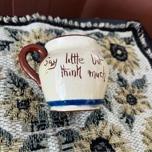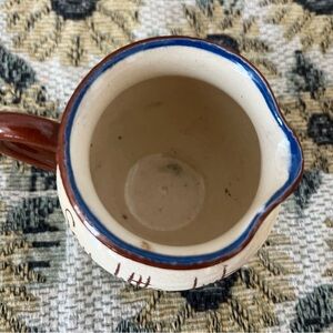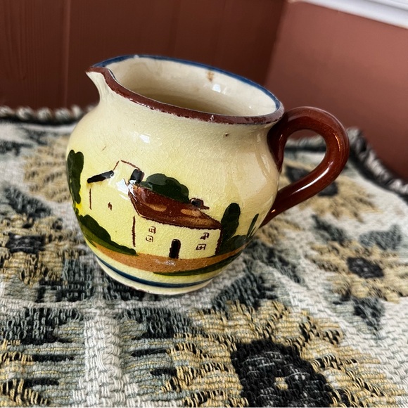 This charming hand-painted ceramic pitcher features a rustic scene with a blend of cream and brown colors. Perfect for adding a touch of countryside charm to your home decor.