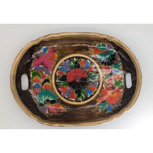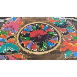 Hand-Painted Decorative Wooden Serving Tray With Colorful Floral Design