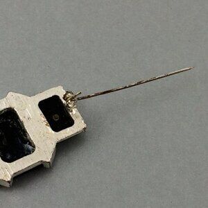 Silvertone, Rhinestone and Black Hand-Painted Ferret Brooch