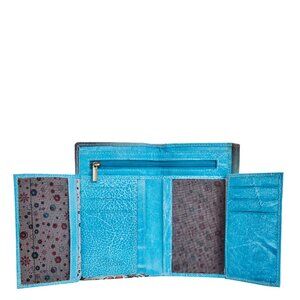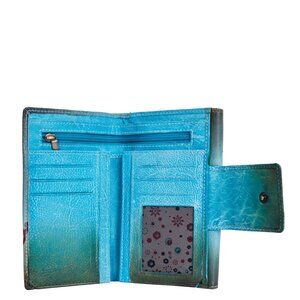 Hand-Painted Genuine Leather Blue Colour Bifold Wallet & Card Holder for Women