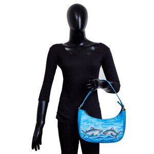 Hand-Painted Ladies Hobo Shoulder Bag –Ocean Blue Leather Tote Sling Bag Handbag