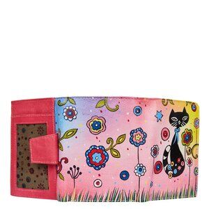 Hand-Painted Leather Cat Artwork Trifold Wallet with Card Slots for Women