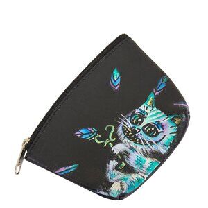 Hand-Painted Leather Coin Pouch with Cat Artwork – Compact Wallet