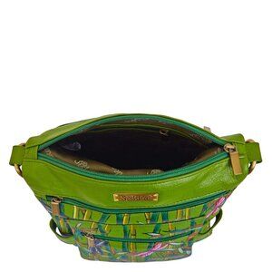 Hand-Painted Leather Women Green Multi-Compartment Crossbody Sling Bag