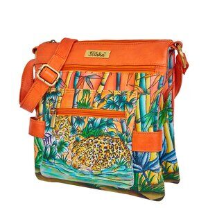 Hand-Painted Leather Women Orange Multi-Compartment Crossbody Sling Bag