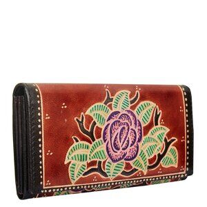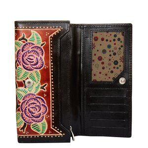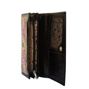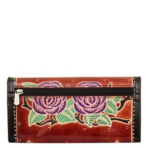 Hand-Painted Roses Embossed Artwork Leather Wallet with Card Slot for Ladies