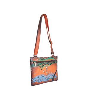 Hand-Painted Women's Leather Crossbody Sling Bag – Over the Shoulder Purses