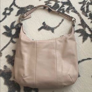 Creamy/taupe soft leather Coach shoulder bag. Can be worn as crossbody bag with attachment strap. Like new.
