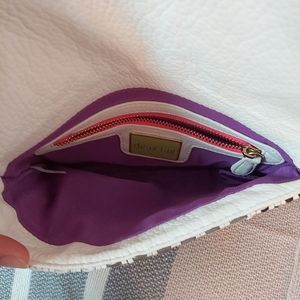 9 and a half inches wide X 6 and a half inches. Minor discoloration on interior over magnetic closure.
