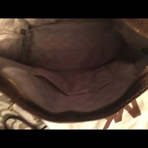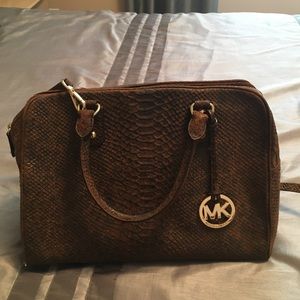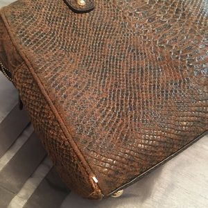 Large brown embossed leather handbag. Removable and ajustable shoulder strap.