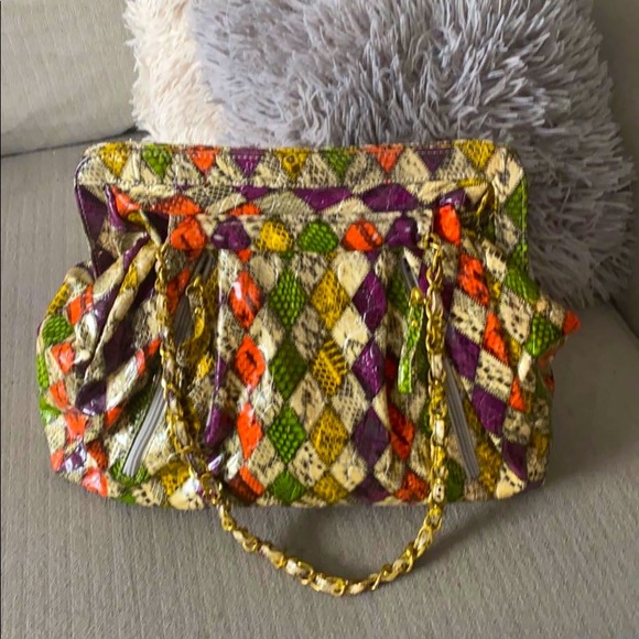 Colourful snake skin handbag