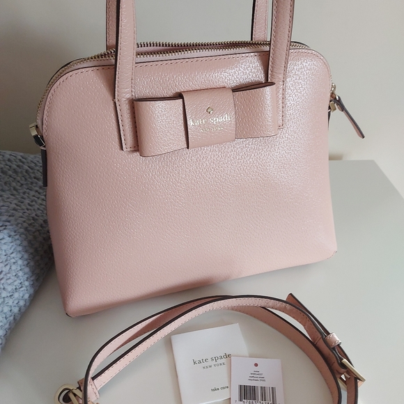 Kate spade medium dome satchel bag , very elegant and soft pink color , brand new, the tag was inside the bag not attached . Boar skin embossed leather, capital Kate jacquard lining