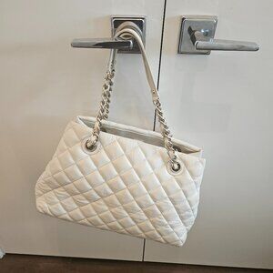 Kate Spade Quilted Shoulder Bag – Elegant & Timeless Chic and versatile Kate Spade quilted shoulder bag in classic white. Crafted with soft leather and silver chain-link straps, this piece combines style with practicality. Authentic Kate Spade Quilted leather design Spacious interior, perfect for daily essentials Silver chain and leather strap detail Gently used, in very good condition ✨ A sophisticated addition to any wardrobe – perfect for work, weekends, or evenings out!