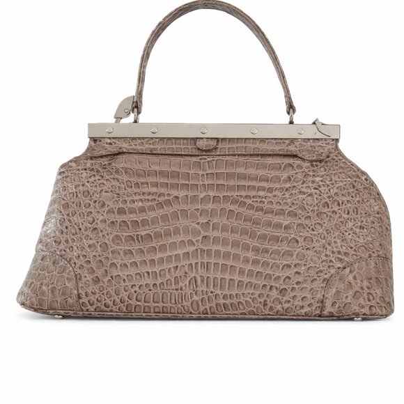 💼 Structure: Sturdy frame top with kiss-lock closure and single top handle for graceful hand-carry