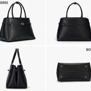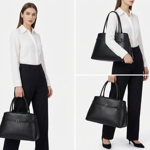Elevate your everyday look with this sleek and structured black tote bag, designed for work, school, and daily errands. Crafted from smooth faux leather with a minimalist silhouette, this tote blends modern elegance with practical functionality. Its spacious interior easily fits your daily essentials while maintaining a polished, luxury-inspired look.