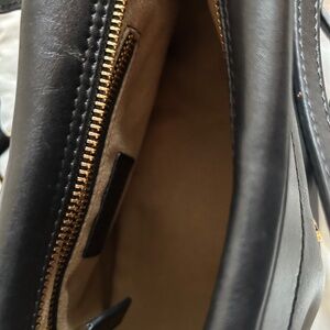 Manu Atelier satchel bag. Material black leather. In good condition. Some scuffs on leather. Size 10” W x 4” D x 6” H.