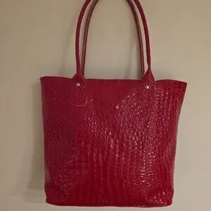 Red Croc-Embossed Tote Bag – Chic, Spacious & Stylish Never Used