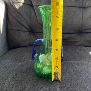 Handblown Artisan Glass Vase Blue and Green 7.25in