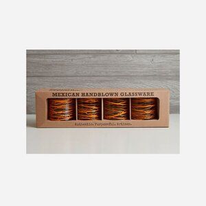 Handblown Mexican Orange Swirl Glasses – Set of 4 Artisan Recycled Glass